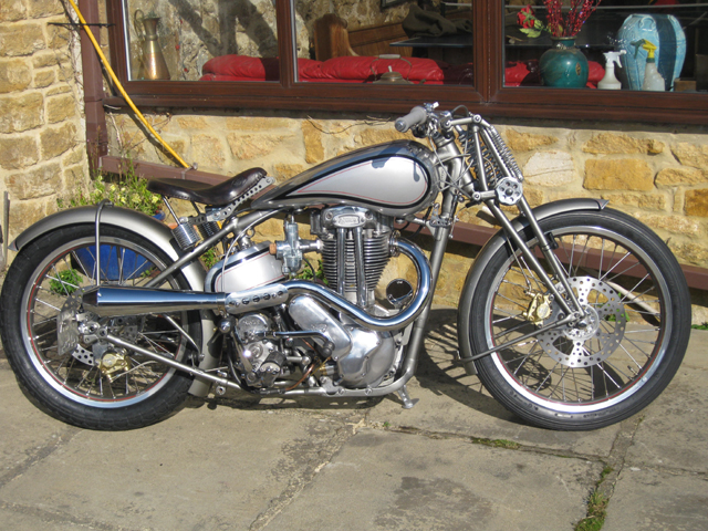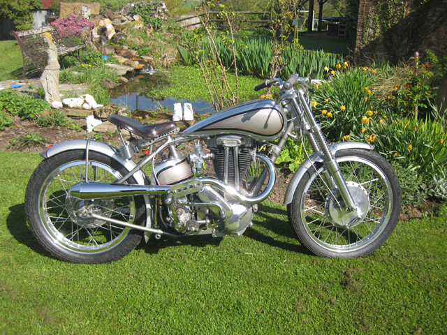 Here are a couple of 500cc OHV single cylinder Nortons made by George Cohen in his shed. At his website you can see more of his custom made motorcycles.